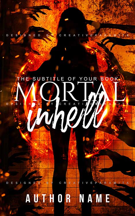 dark fantasy book cover, demonic realm art, fiery hell aesthetic, supernatural thriller cover, horror book design, infernal claws illustration, apocalyptic fantasy theme.