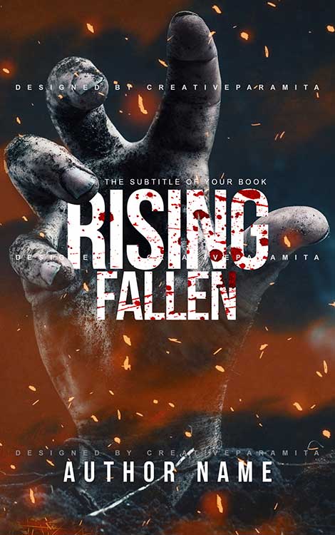 The title, “Rising of the Fallen,” is bold and distressed, with gritty textures and blood-red accents that heighten the horror aesthetic.
